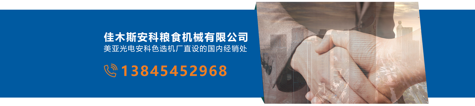 佳木斯安科糧食機械有限公司是美亞光電安科色選機廠直設的國內經銷處。經營安科色選系列,同時營銷:布勒、佐竹、揚洲正大、郴州糧機、牧羊、等成套制米生產線、品牌米機拼裝線、各品牌拋光機、佳龍電子秤、自動真空包裝秤、成套電控設備制造安裝、模擬屏軟起動、稻殼發電機組、大中型糧機米機專業設計、安裝、烘干塔、鋼結構、售后服務、配件供應、工程覆蓋東三省各地,得到了新老用戶的廣泛贊譽和信賴。 佳木斯安科糧食機械有限公司以高品質、新性能的產品和"誠信、求實、創新"的企業的精神,完備的服務。 成功之路再助您一臂之力!